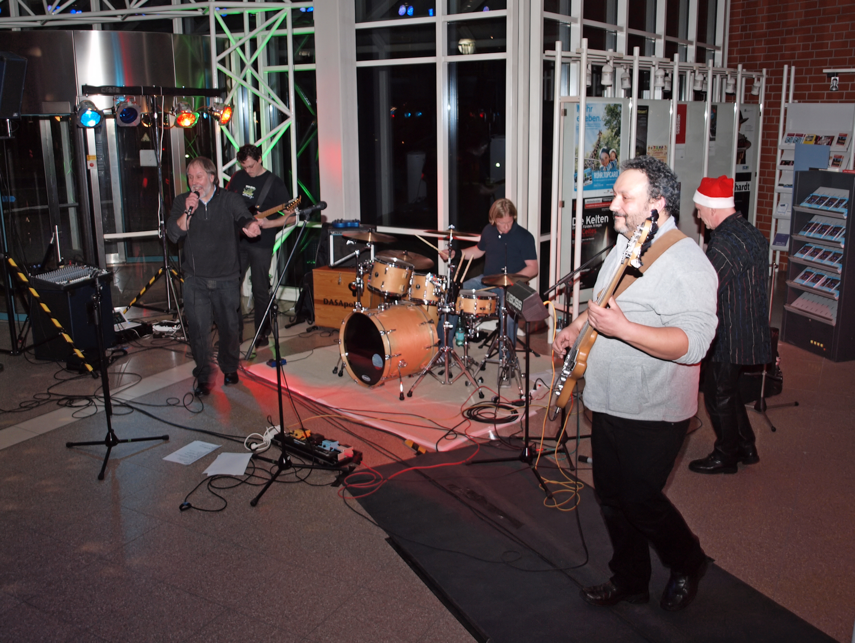 Das Orga-Team für die BAuA-Weihnachtsfeier 2010 fragte bei unterschiedlichen Musikern unter Mitarbeitern der BAuA an, ob man Lust auf einen Weihnachtsauftritt hätte. Und, in der Tat, 5 Musiker für die Zusammenstellung einer BAnd konnten gefunden werden und waren dann schließlich nach nur wenigen gemeinsamen Proben in der Lage ein halbwegs vernünftiges Kleinkonzert abzuliefern. Hat Spass gemacht. Übrigens, das war wohl der letzte Auftritt von Edwin, insgesamt. Schade.